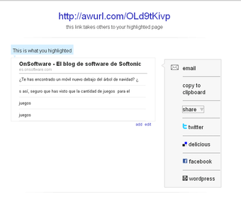 Awesome Highlighter es una práctica aplicación que te permite destacar un determinado fragmento de una página web y compartirlo con otras personas.