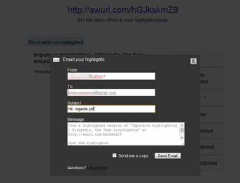 Una vez destacado tu texto con Awesome Highlighter, es muy fácil enviarlo por correo o bien compartirlo a través de Facebook o Twitter